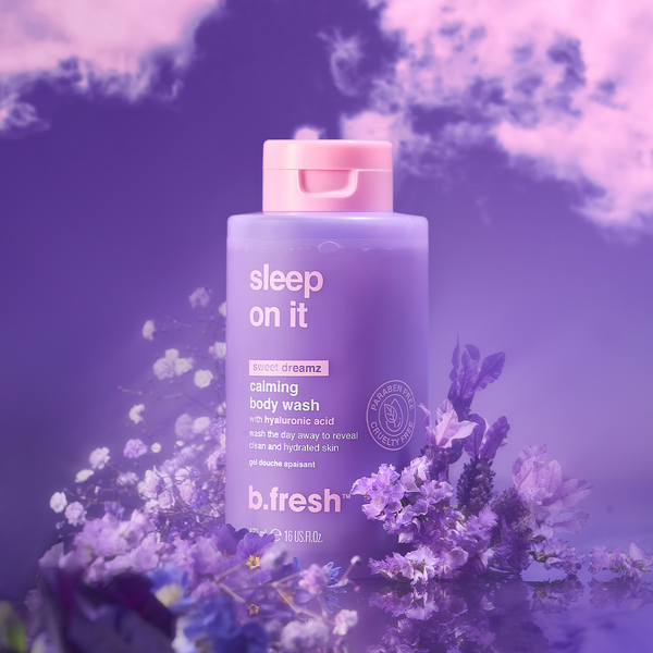 wash away the worries of the day to reveal clean and hydrated skin treat yourself to some sweet, sweet dreamz by introducing this calming body wash into your bedtime routine. wash the day away & tell your problems you'll sleep on it with an ultra calming florally scent that'll have you mellow and ready for a pillow. when the day has left you feeling a lil' deflated, the added goodness of hyaluronic acid will rehydrate + moisturize for skin as soft as the pillow you'll be hittin' after your wind-down-wash. 'cos nothin' gets you fresher than a damn good sleep.