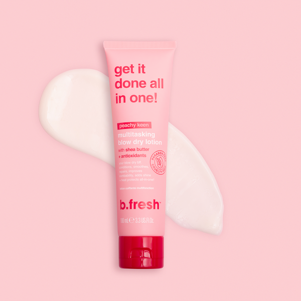 a multitasking blow dry lotion that conditions, smooths, repairs, improves combability, adds shine + heat protects all-in-one! like, why have a product for each when this bestie does it all in one go?