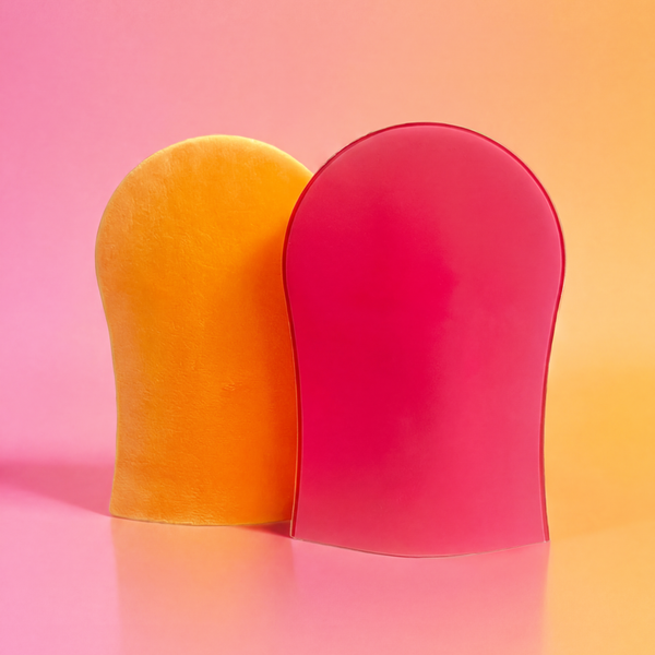 a double sided mitt to make it happen. a spongy side for smooth + even application all over your hot bod. finish off by polishing your tan in with the velvety, soft side so you can glow your own way....with results that speak for themselves.