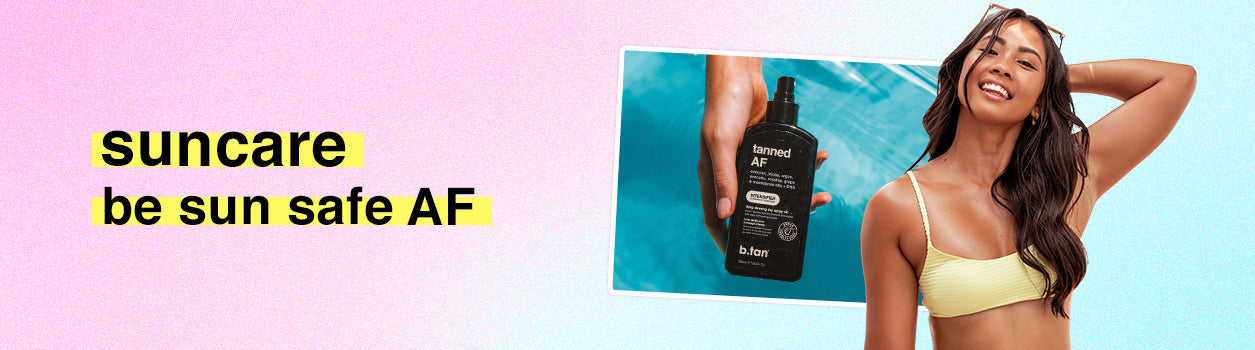 when you just wanna have some fun in the sun, take us along for the ride. we've got low spf tanning oils to help you get that summer tan on with deep bronze results. or maybe you're looking for some spf to help you be sun safe AF. or maybe you've had a little too much sun and need a little after sun care to help soothe + rehydrate sun-drenched skin. we've got it all & more. each product is packed full of the best skincare ingredients to treat your skin to some extra nourishment in & out of sun.