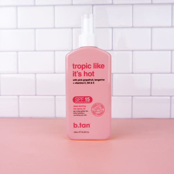 a deep tanning dry spray oil with spf 15 protection. i’m enriched with pink grapefruit, tangerine and enriched with vitamin c, b5 & e to hydrate and nourish your skin while you get that deep golden tan you crave.