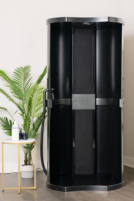 Instead of curving outward at the base in a full circle, like traditional tanning booths, the All in One Booth features a half moon cut out. This enables you to stand in close to your client, without sacrificing your client’s space within the booth. Being able to stand where you want (and need to be) is essential to creating the perfect spray tan.